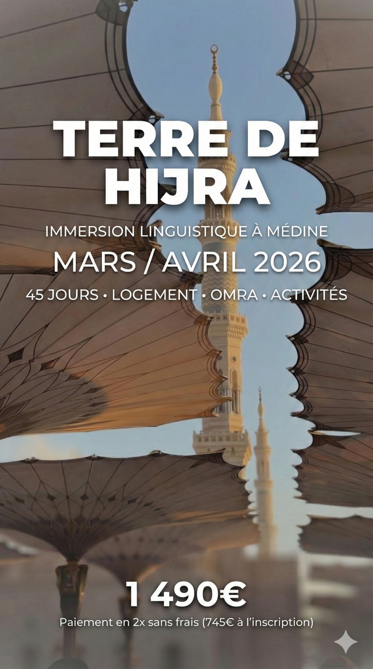 – Un programme d’apprentissage de 85% des mots du coran sur une période de 45 jours. dans la ville sainte de Médine, spécialement conçu pour les frères.